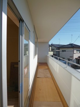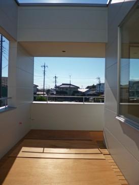 2階のバルコニーにウッドデッキ(ヴェルダデッキ/ Verda deck)が敷かれました。2階の吹抜の周りを ”くるり” と巡ります。