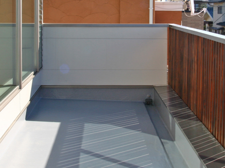 屋根勾配は1/50以上(排水溝部分は1/200程度)とし、さらに、ゴミや落ち葉で配管が詰まっても、室内に水が流入しないようにオーバーフロー管を設け、また、バルコニー立上り高さよりもサッシ下端を高くして、2重、3重の安全設計とするよう心がけています。