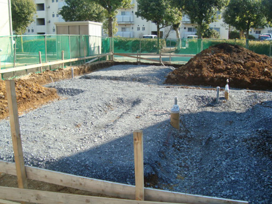 右は、地鎮祭の時に神主様より預かった鎮物を建物中央付近の納めたところ。