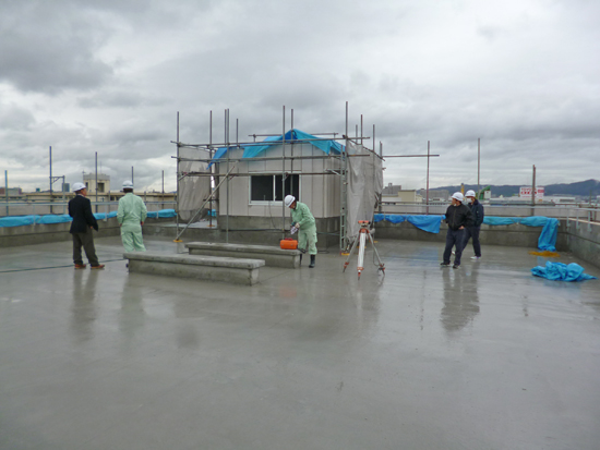 スミレ工作所の方にも全体をご覧頂きました。中央のベンチのようなものは、電気のキュービクル(配電盤)を載せるための基礎です。