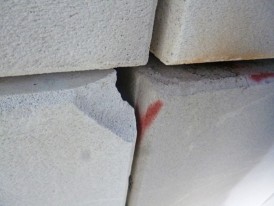 ALCは脆い面があり、施工時に欠けや割れが生じます。幸い補修できる基準のサイズのもの(補修限界内)でしたので、メーカーの補修材を使って補修してもらうことに。