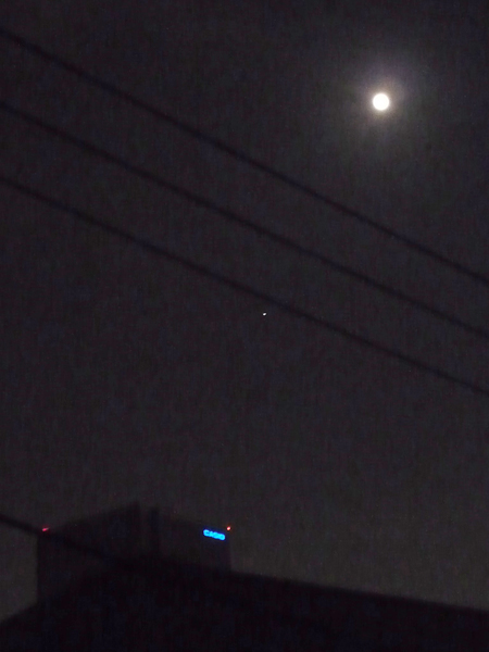 事務所のバルコニーから見えた、おぼろ月。