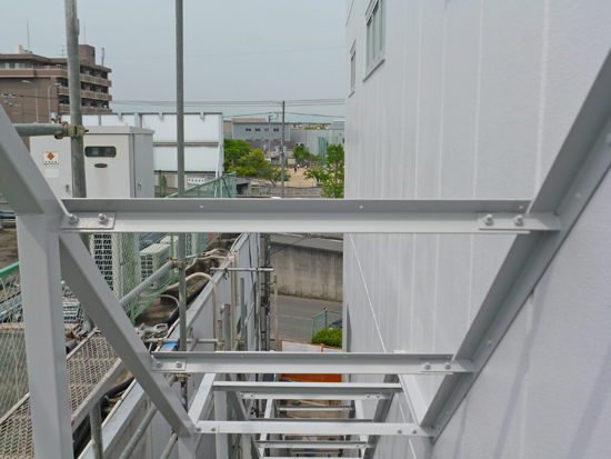 屋外階段の屋根の鉄骨下地。この上にポリカーボネートを貼ります。