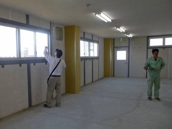 建築基準法の完了検査では、排煙窓の操作位置高さの指摘を受けました。その日の内に是正し、写真をメールで送りました。