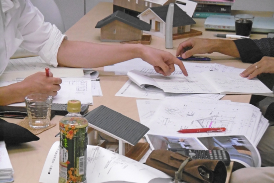 『しだれ桜と暮らす3世代の家』の平屋部分には、非常に難しい構造上の問題があり、意匠との調整を測るため構造設計者・千葉さん(構造設計スタジオ シエスタ Siesta)と打ち合せしました。