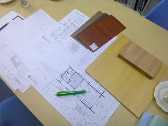 現在基本設計中の『緑と眺望を楽しむ長屋建て住宅』(賃貸併用の完全分離型二世帯住宅)は、建て主の方に事務所にお越し頂き打合せしました。