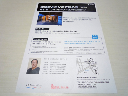 また「建築家とホンネで語る会」と題した、CH13の建て主の方と荒木さんのトークショーがあり、建築家探しや設計・工事中の貴重な話を聞くことができました。