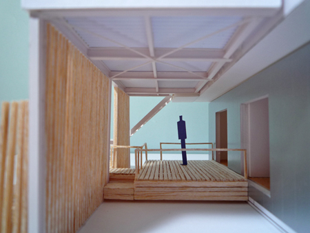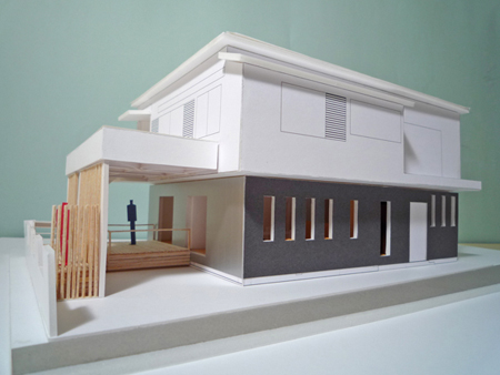 『朝霞市のリフォーム』のデッキ部分を模型にして、建て主の方と打ち合せしました。