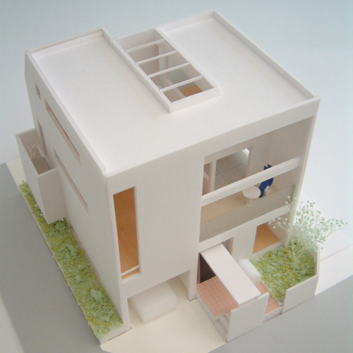設計事務所アーキプレイスでは、SE構法で建てた住宅『ひかりの家』(下の写真)『家族が楽しい家』『5層なのに3階建ての家』と、現在SE構法で設計中の『みんな集まる家』の模型とパネルを展示する予定です。