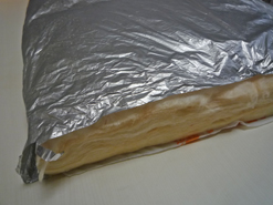 名前の書いてある側が室内側にシルバーの面(右下写真)が外壁側にします。