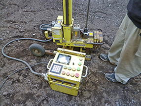 先週、建物の解体が終わった『細長変形地の二世帯コートハウス』(木造3階建・耐震構法SE構法)敷地で、今週、地盤調査を行いました