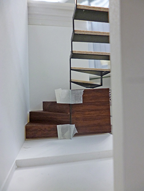 『細長変形地の二世帯コートハウス』(木造3階建・耐震構法SE構法)は実施設計図が完成し、施工会社に見積もりを依頼しています。