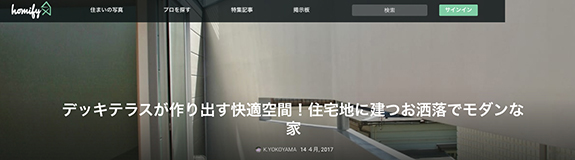 オンラインマガジン「homify(ホミファイ)」の日本語サイトで、宙に浮かぶデッキテラスとLDKがフルオープンサッシ繋がる『阿佐ヶ谷の家』(鉄骨造3階建 )が紹介されました!