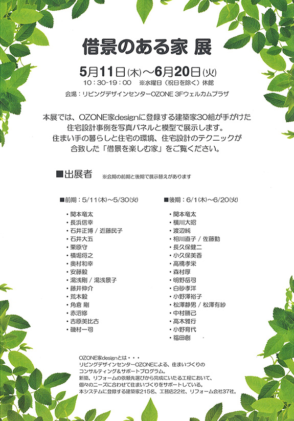 ◆「借景のある家」展 https://www.ozone.co.jp/event_seminar/event/detail/286