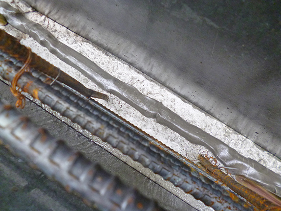 基礎耐圧盤のコンクリートと基礎立上りのコンクリートの打ち継ぎ面には、打ち継ぎ面からの雨水の浸入を防止するための止水材・KUNI SEAL(クニシール)をいれています。