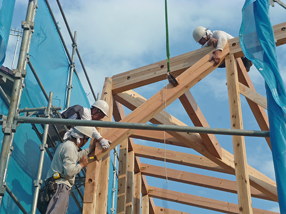建て主の方は、骨組みが1日で立ち上がったことに驚かれていました。