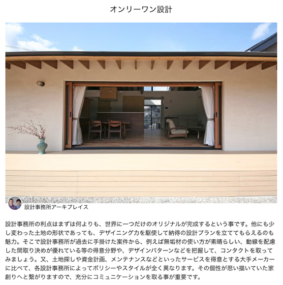 5つの理由として上げられている、オンリーワン設計、充分なヒアリング、施工クオリティ、イメージを形に、こだわりの空間はいずれも設計事務所に依頼する場合のメリットですが、この記事では同時に、設計事務所に依頼する場合に気をつけたい点(デメリット)にも触れられています。ご興味ある方は、ぜひ一度ご覧ください。