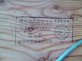 土台や柱、梁の大きさはメジャーをあてて確認。床合板の種類や釘ピッチも確認。