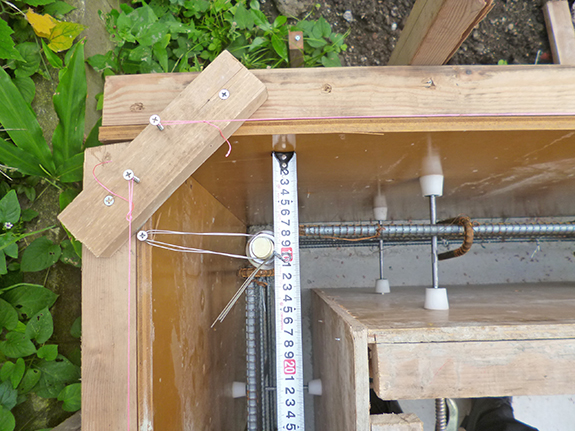 型枠の設置状況、鉄筋のかぶり厚さ、アンカーボルトの位置を確認。基準のかぶり厚が取れていないところの修正を数カ所お願いし、修正後に是正写真で報告してもらうことに。