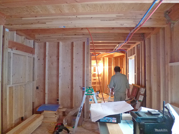 壁の合板が貼られ、窓の下地が組まれたところは、室内の様子が具体的にイメージしやすくなりました。