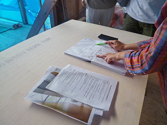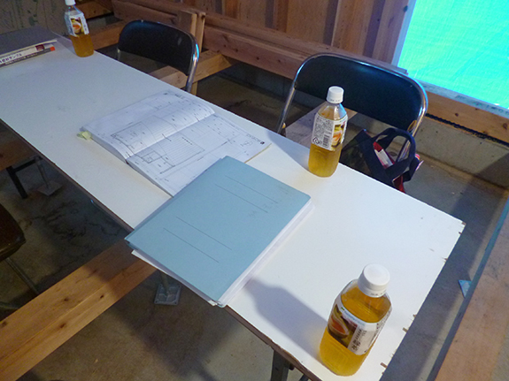 まずは、1階に用意されたテーブルで打合せ。現場は休みでしたが、現場監督さんは来て参加してくれました。