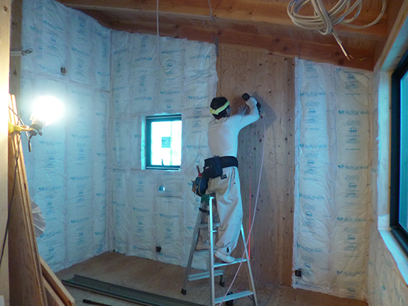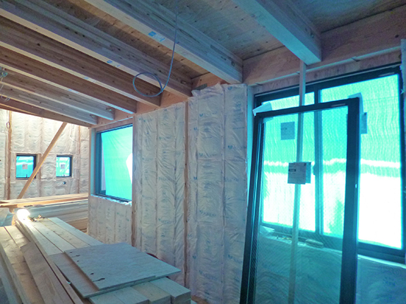 2階では外壁に繊維系断熱材のグラスウールが充填され、室内の暑さも少し和らぎました。