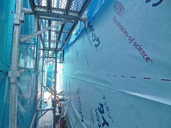 外部の透湿防水シートが張られた部分を確認してまわりました。