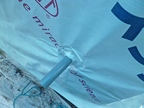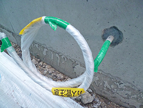 外壁や基礎を貫通する配管の周りの施工を確認