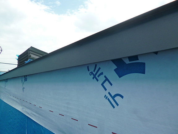 ガルバリウム鋼板で葺く屋根のゲラバの施工を確認。一部修正をお願いしました。