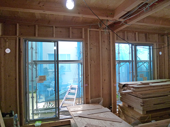 2階LDKの北側の窓にはこれからアルミサッシが入ります。