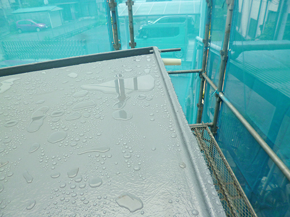 玄関ポーチと自転車置き場の屋根のFRP防水も完成。