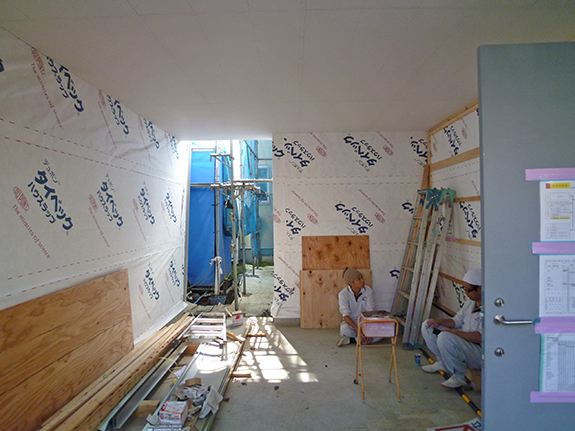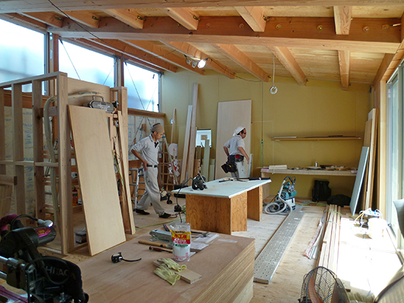 和室廻りにも石膏ボードが貼られ、壁上部の欄間部分の工事も進んでいます。