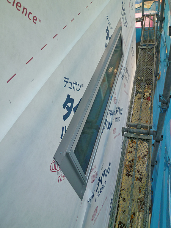 窓廻りには四周に捨て板金を取り付けた、几帳面な施工がされています。