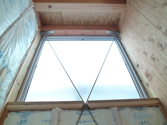高窓(ハイサイドライト)部分のサッシ(ビル用サッシ)がつきました。