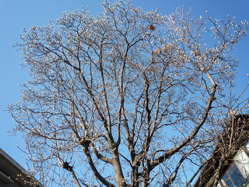 現場近くにある、大きな木蓮(モクレン)の樹では蕾が膨らみ、今にも咲きそうに見えました。
