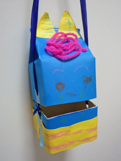 豆入れは、子供が幼稚園から持ち帰ったもので、牛乳パックを利用した可愛い鬼型です。