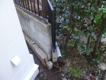 敷地境界の位置には水糸を張りました。狭小地なので、お互いの敷地や設備機器のメンテナンスのことを考えて、塀を新たに作るのは中庭(コート)部分だけにして、その他の敷地境界側は簡易な仕切りにし、高い塀は立てないことになっています。