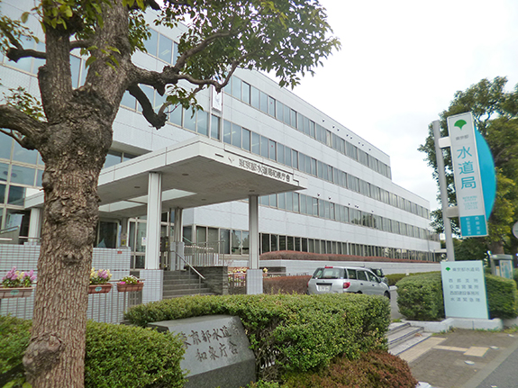 水道局では道路に入っている水道本管の位置と大きさ(径)を確認します。