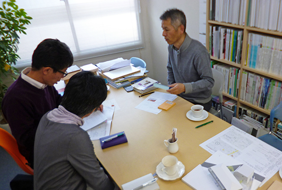 週末、『大きなテラスの小さな賃貸住宅(杉並区)』(木造2階建・在来工法)の基本設計の打合せを建て主の方と行いました。(3/17)