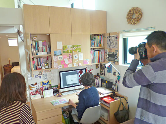 設計事務所アーキプレイスで家づくりをお手伝いしたアトリエのある住まい『緑あふれるアトリエのある家』が(株)マガジンハスのwebマガジン100%LIFEで紹介されることになり、取材に立ち会いました。