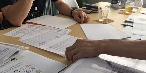 建て主の方には、各社の明細見積書とそのチェック内容をご説明し、工種ごとの費用が比較できる一覧表もご覧いただきました。また、減額案の変更項目についても少しご相談しました。(8/10)