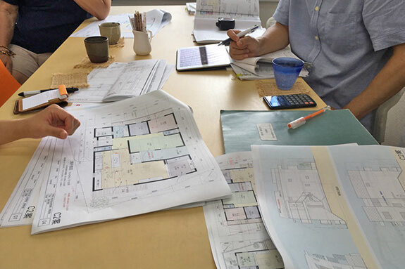 テーブル一体型のキッチン製作したアーキプレイスの事例を参考にしながら、細かなご要望を改めてお伺いしました。