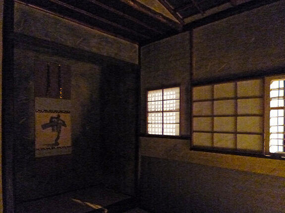 実寸で詳細まで再現された待庵(たいあん)[伝:千利休]。僕(石井)は初めて中に入りましたが、近藤は大学の古建築実習以来二度目の体験だそうです。