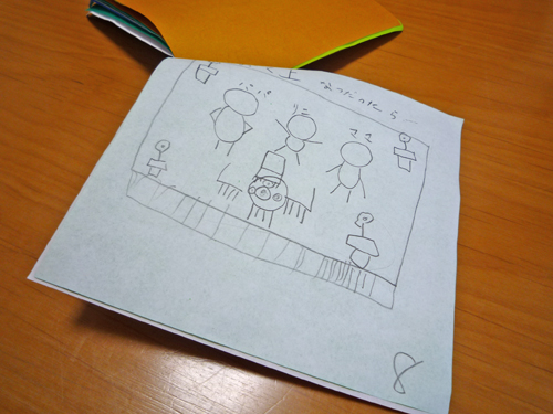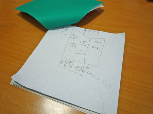 この住宅の計画が始まった時はまだ赤ちゃんだった娘さん(小1)が、前回(2/12)の打合せの後、書かれたという新居の絵を見せていただきました。
