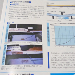 カタログにも載っている実験を事務所でしてもらいました。モルタル(ラスモルII)が塗られた板に人が載り、板が2cm以上撓みましたがモルタルにクラック(ひび)が入りませんでした。