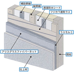 富士川建材工業(株):ラスモルII 外壁通気工法 (ノンクラックWラス通気工法)