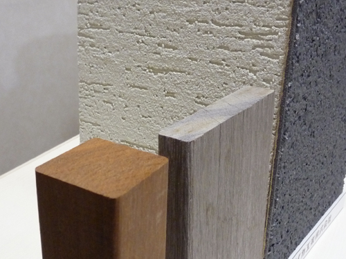 左官仕上と木格子を合わせてみて、外部仕上げのイメージも確認しました。