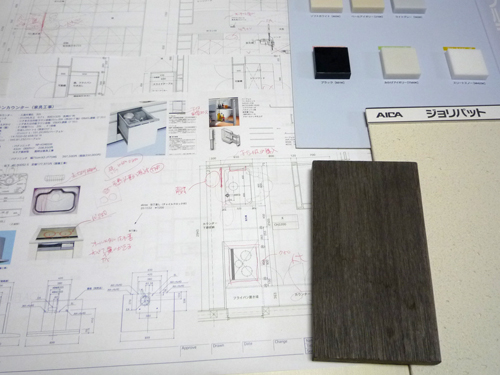 2月中旬から進めてきた実施設計も、見積もり前の最後の打ち合せになり、外部仕上、外構、キッチン家具、設備、照明など多岐にわたり、打合せ・確認を行ないました。