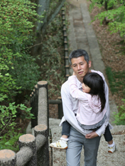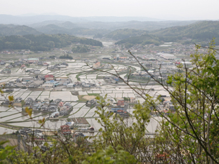 17キロになる子供を抱え、龍華寺から約600m歩いて古城山に登りました。残念ながら山城風の展望台は閉まっていて中には入れませんでしたが、かつて紀州高野山領・大田荘(おおたのしょう)として栄えた世羅町の町並みを見ることが出来ました。