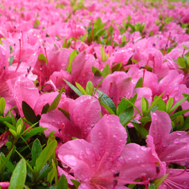 設計事務所アーキプレイスのある初台から、雨の中を歩いてパークタワーに行きました。緑の葉の中に、濃いピンク色の花を一斉に咲かせ始めたツツジが、雨に濡れて、いっそう鮮やかに見えました。